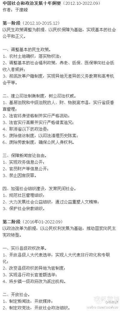 最后贴一张于建嵘教授的《中国社会和政治发展十年纲要》,以供参考。