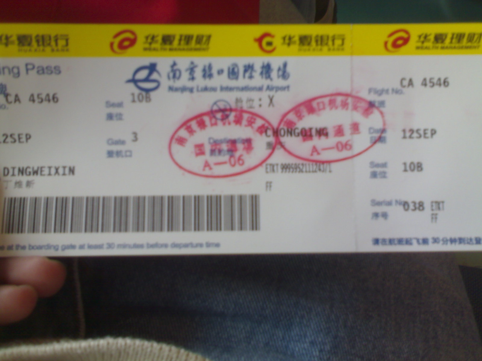 9月12日清晨,终于开始了自己的三峡之旅,先坐汽车到南京禄口机场。