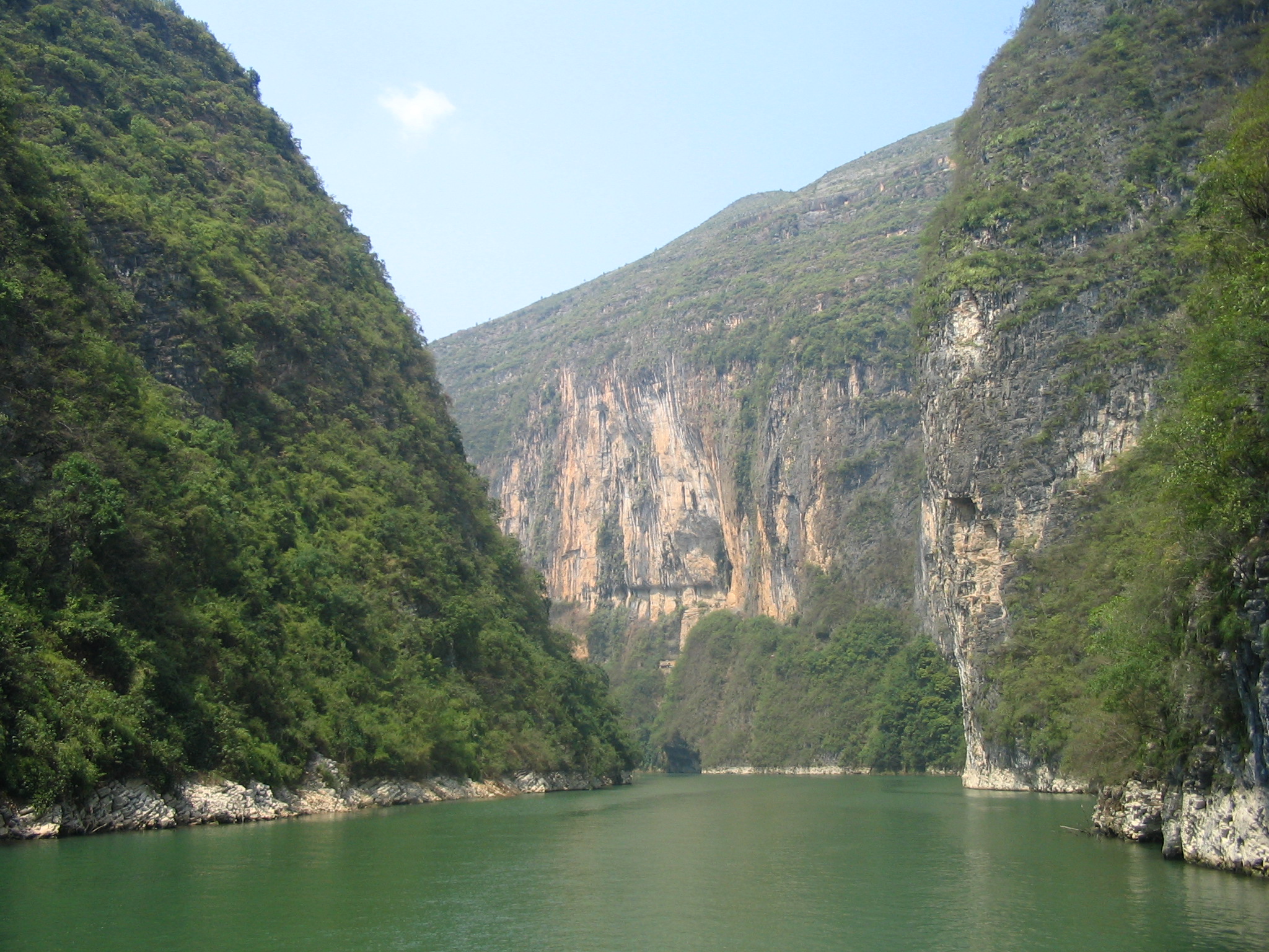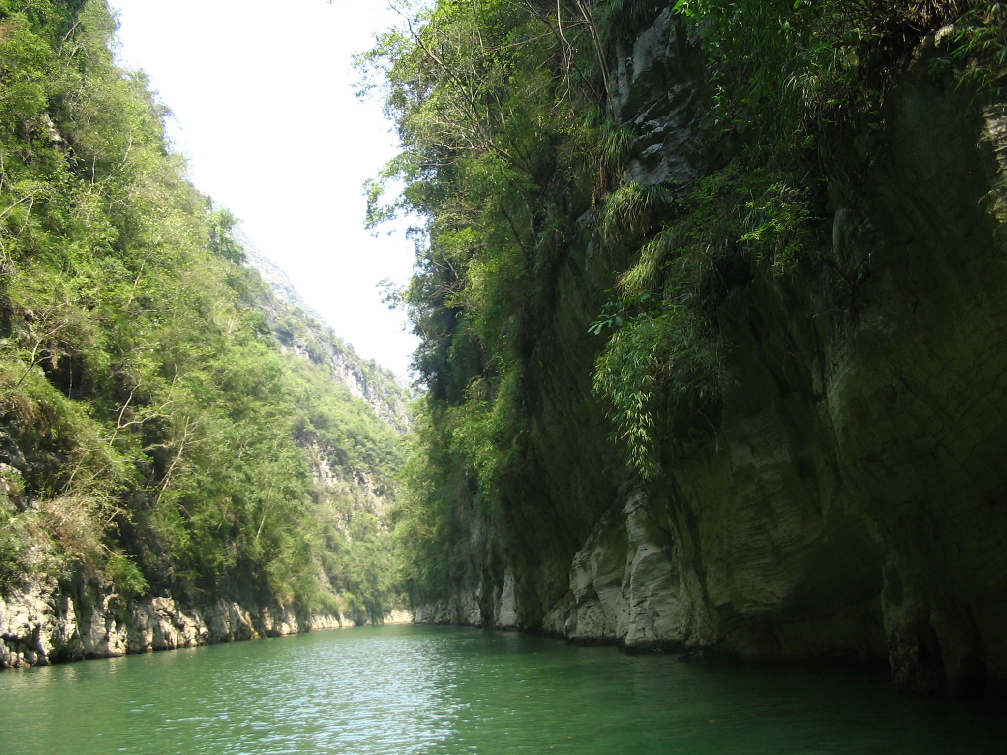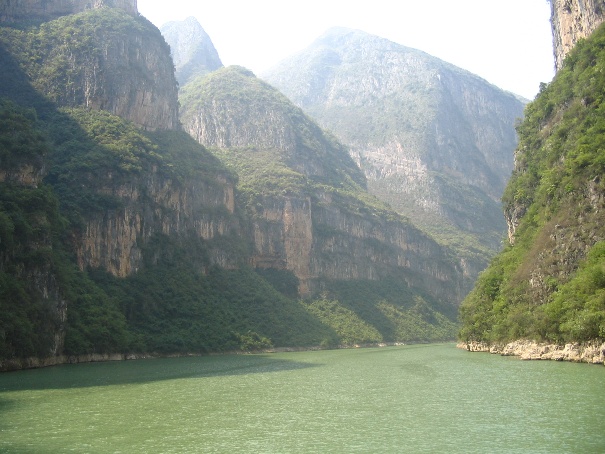 小三峡也叫大宁河,是长江的的一个支流,其峡谷秀丽幽深,江水绿如蓝,可以看到远处悬崖绝仞上的悬棺。有两件趣事,船上有位英格兰小伙,我一直帮他翻译,但在解释悬棺(coffin)的时候,因为我的发音不纯,被错听为咖啡(coffee)。谈及职业,我说自己是搞天气预报的,他说英国的天气非常难于把握,有很多的雾天(fog ),我错听为青蛙(frog) 。看来,英语还得抓紧啊!
