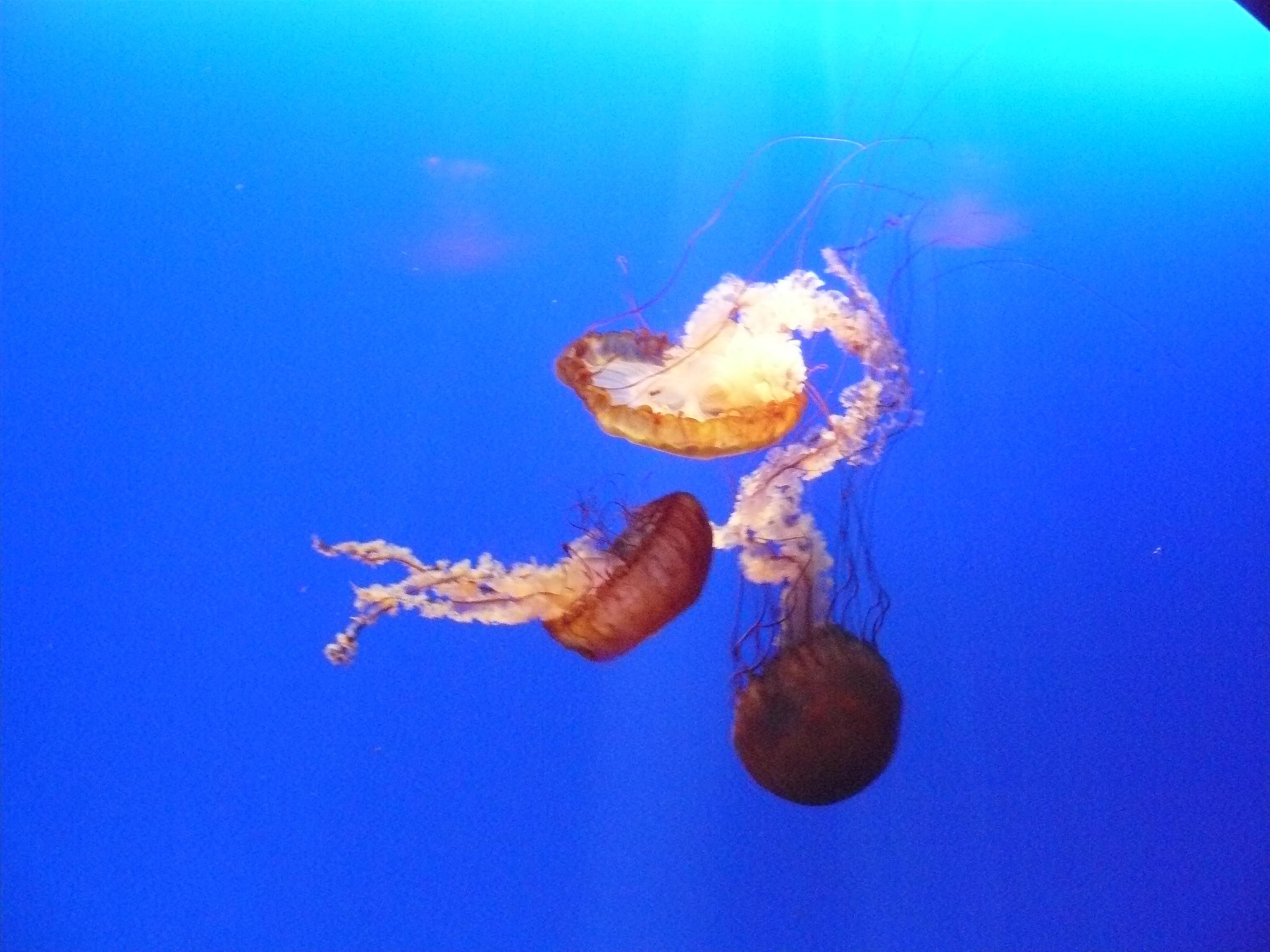 海底世界,在淡蓝色灯光下的水母,有的像星星,有的像繁花,好漂亮。