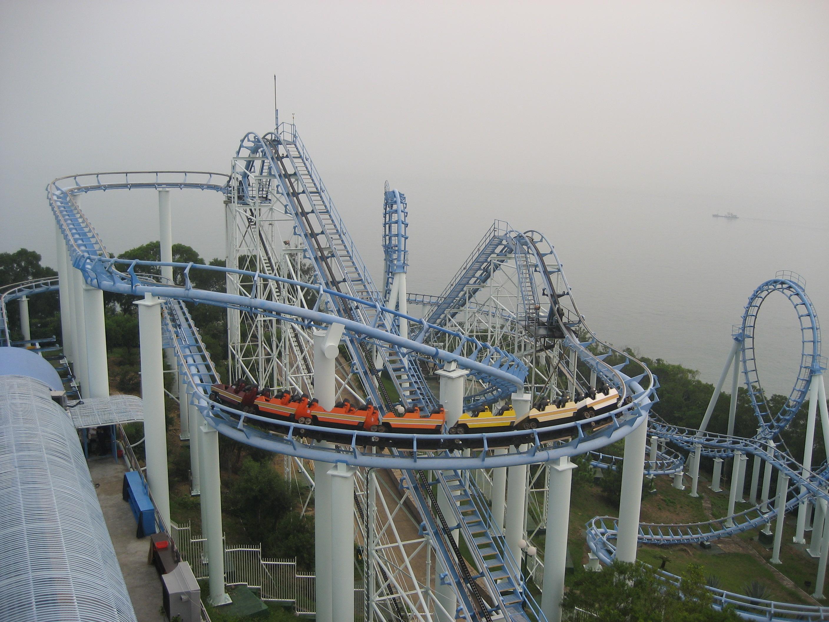 因为在水母馆等馆体呆的时间过长,没有赶上盛名的海豚表演,真是遗憾。不过我却玩一下过山车,第一次坐这东西,虽然安全措施到位,并不危险,但的确非常刺激,尤其是在倒悬的时候。