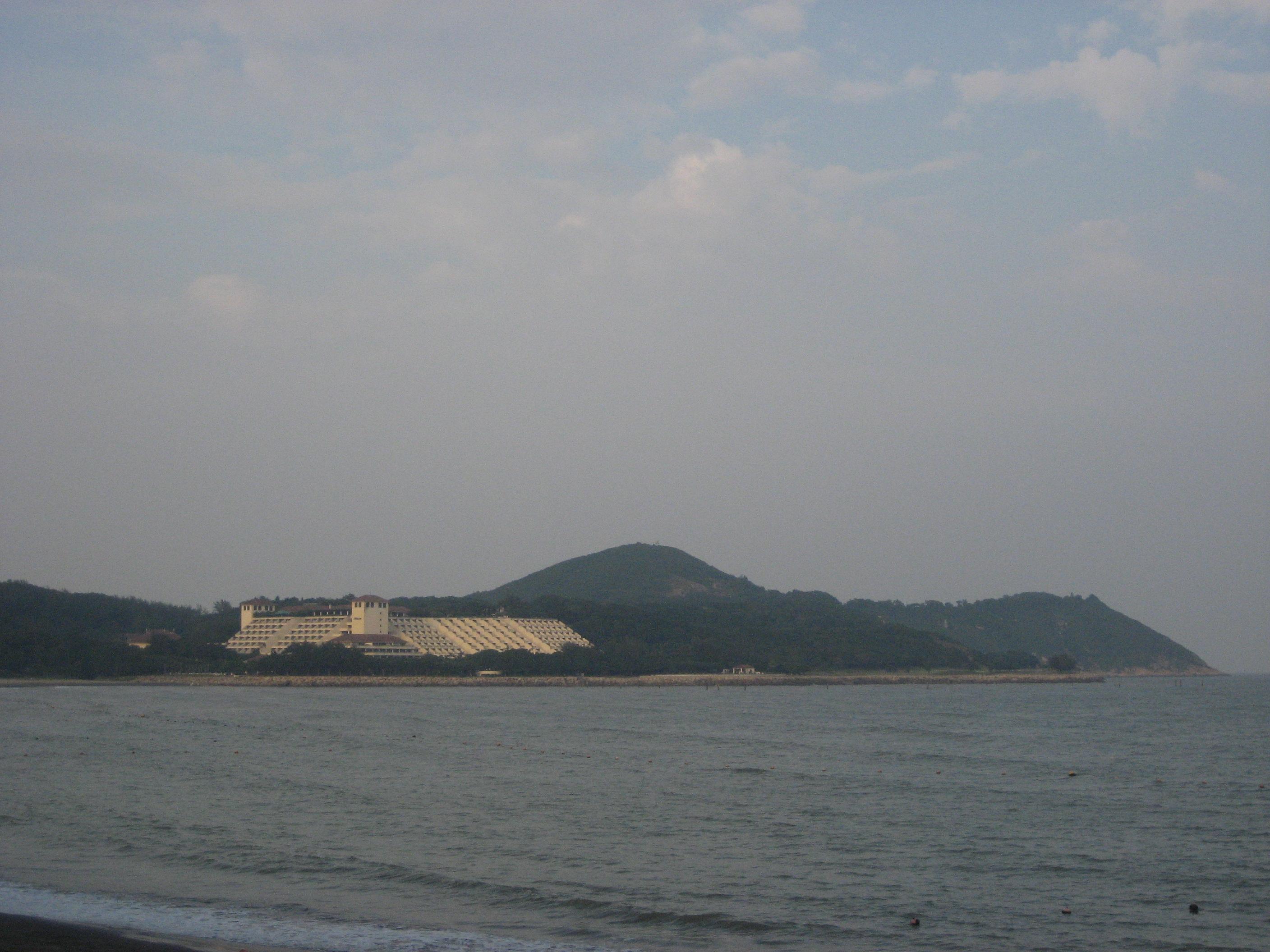 出来后坐缆车上山,好高,还好偶没有恐高症,很平稳,海湾中几个小岛,好看。