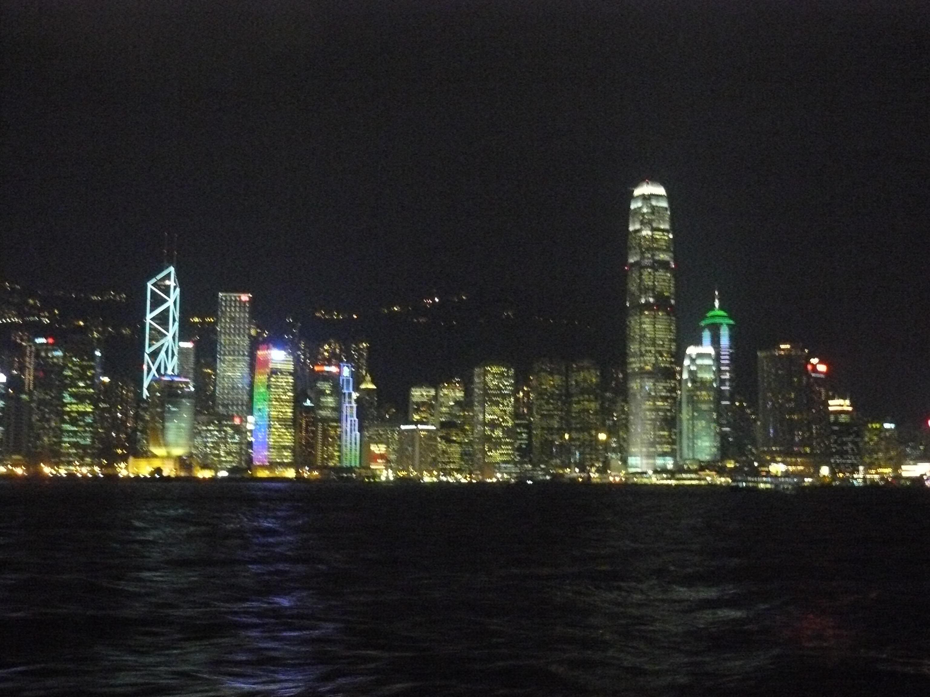 晚上上船看维多利亚海港夜景,船上发了一瓶免费的矿泉水。火树银花不夜天,看过山城重庆的夜景,和香港相比,重庆的层次感非常强烈,而香港则海风吹拂,夜色迷人,更加罗曼缇克。