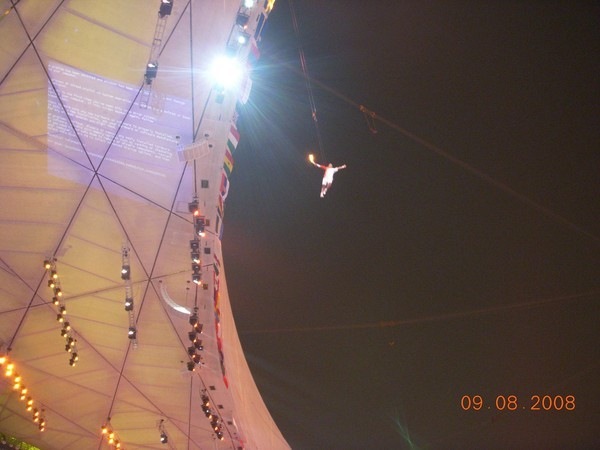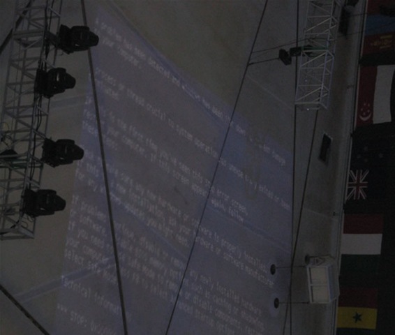 北京奥运会开幕式现场的灯光和投影显示系统使用了上百台微软操作系统的服务器产品,在李宁将要点燃圣火之前这一重要时刻,采用了window的投影仪突显经典蓝屏。